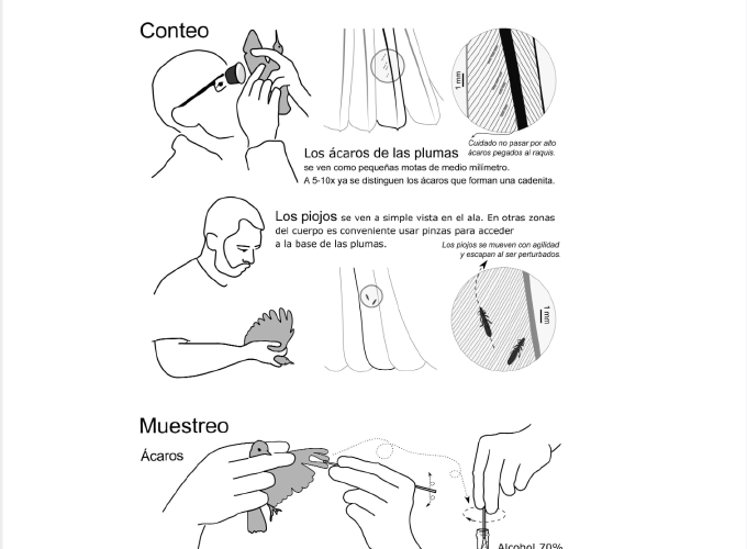 Los ectosimbiontes permanentes de las aves se han consolidado como sistemas de estudio excepcionales para abordar cuestiones fundamentales en ecología y biología evolutiva. Entre los distintos grupos de ectosimbiontes de aves, los ácaros de las plumas y los piojos son los mejor estudiados. Los avances en metodologías experimentales, en ecología molecular y en genómica han ampliado notablemente el conocimiento sobre estos organismos, estableciéndose como sistemas modelo para la investigación de procesos coevolutivos. No obstante, existe una notable falta de estandarización en los protocolos de muestreo y en las metodologías moleculares, a lo que se suman conocimientos y experiencias que, en algunos casos, no se han publicado y solo se comparten de forma informal entre investigadores. Esta situación limita la comparabilidad entre estudios y ralentiza el avance experimental. En este trabajo revisamos los diferentes métodos de muestreo (colecta y conteo), las técnicas moleculares más apropiadas y las aproximaciones experimentales que se han usado. Con esto, tratamos de poner en común el conocimiento acumulado, para facilitar y estimular futuras investigaciones sobre la biología, ecología y evolución de estos ectosimbiontes.