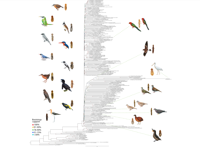 Many parasitic insects, including lice, form close relationships with endosymbiotic bacteria that are crucial for their survival. In this study, we used genomic sequencing to investigate the distribution and evolutionary history of the bacterial genus Sodalis across a broad range of feather louse species spanning 140 genera. Phylogenomic analysis revealed significant diversity among Sodalis lineages in feather lice and robust evidence for their independent and repeated acquisition by different louse clades throughout their radiation. Among the 1020 louse genomes analysed, at least 22% contained Sodalis, distributed across 57 louse genera. Cophylogenetic analyses between the Sodalis and feather louse phylogenies indicated considerable mismatch. This phylogenetic incongruence between lice and Sodalis, along with the presence of distantly related Sodalis lineages in otherwise closely related louse species, strongly indicates repeated independent acquisition of this endosymbiont. Additionally, evidence of cospeciation among a few closely related louse species, coupled with frequent acquisition of these endosymbionts from free-living bacteria, further highlights the diverse evolutionary processes shaping Sodalis endosymbiosis in feather lice.